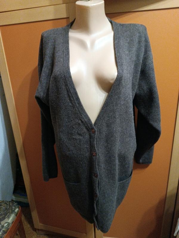 кардиган, колiр коричневый,розмiр М,вовна, iзьян на передостанньому фото, замiри: плечи 54(приспущенi), рукав 51, груди 62, талiя 57, стегна 57, довжина 76