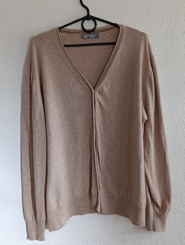 Женский кардиган из шелка и шерсти, бежевого цвета, очень мягкий и комфортный.