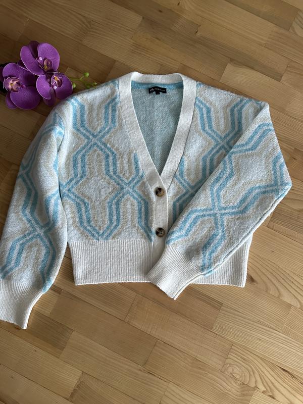 Кардиган бренду С&А. Дуже затишний, мʼякий та приємний. Розмір XS. Довжина 50, рукав 53, під пахвами 49.