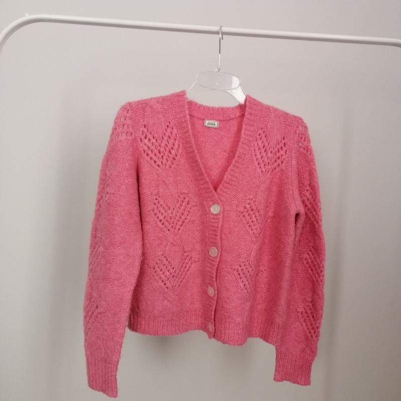 Кардиган рожевий на гудзиках. Замеры:полуобъем груди-50см,полуобъем талии - 48см,длина изделия-55см, длинна рукава-62см