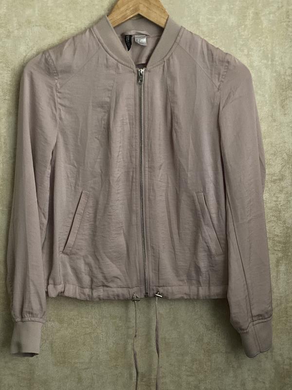 Літній бомбер пудрового кольору. На блискавиці, по лінії бедра куліска з фіксаторами, трикотажні, якісні манжети. Базова річ
