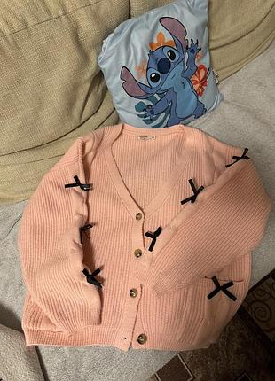 Теплий рожевий кардиган з бантиками. Колір вживу гарніше