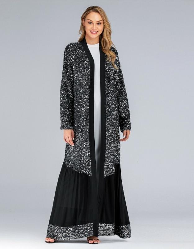 Стан нового.Открытый фасад без застежки.Черная основа густо покрыта серебристыми и мерцающими пайетками.Довжина 143 см.Рукав 60см.Пог 53см.Пот 53см.Поб 59см