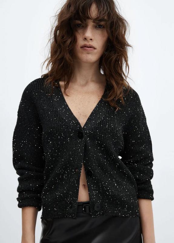 Кардиган з вовною і альпакою від Scotch&Soda з кольоровою люрексовою ниткою Має маленькі вбудовані підплічники Розмір S, на М теж чудово Довжина - 52 см Напівобʼєм грудей - 44см, добре тягнеться