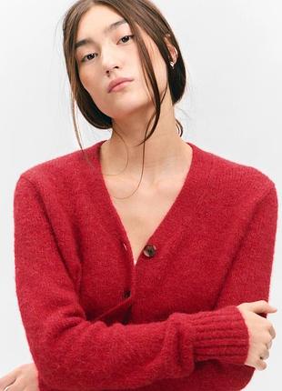 Красно-коралловый кардиган, в составе мохер, шерсть, идет как оверсайз, без бирки, не носился плечи 48 рукав 62 пог 58 длина по спине 61