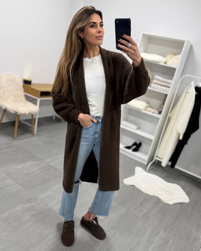 Весняний кардиган з альпаки пасує під всі стилі гардеробу, можна додавати ремінь на талію, щоб підкреслити жіночність у силуеті, хороша довжина та вільний крій пасує на всі типи фігур Кольори: • мокко, чорний, шоколад, молочний Параметри виробу: • груди 120 см (підходить на 80-130) • довжина рукава 61 см • довжина від плеча 125 4666 Накладного нема