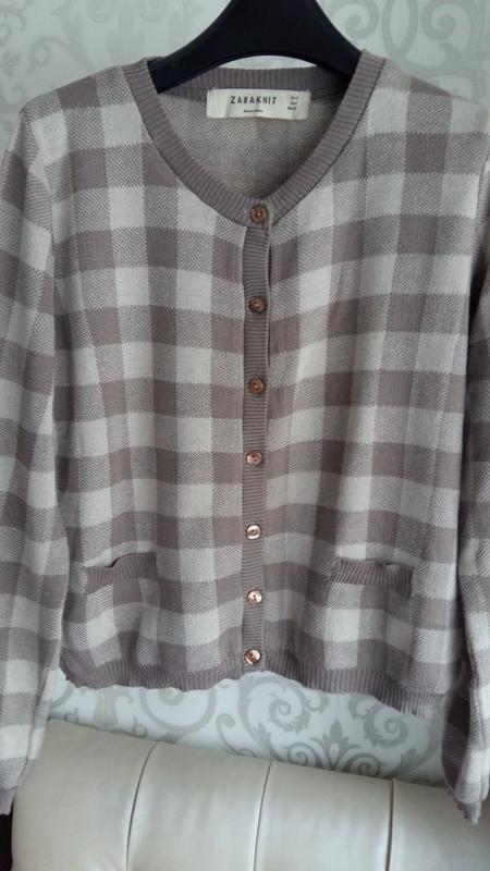 Кофта ZARA з довгим рукавом, застібається на гудзики. Принт: клітина. Розмір на бірці: S (36, 44). Дуже приємна текстура. Заміри: ПОГ-49 ПОБІДИ-45 (гумка,присобрана) Довжина-50 Довжина рукава по внутр.шву-44,5 Довжина рукава від лінії плеча-59