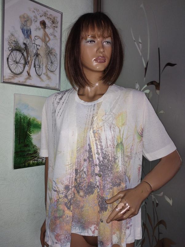 В состоянии новой вещи, двойка, состоит из топа в кардигана сыкотким рукавом, склад вискоза, акрил, коттон, размер евро 42
