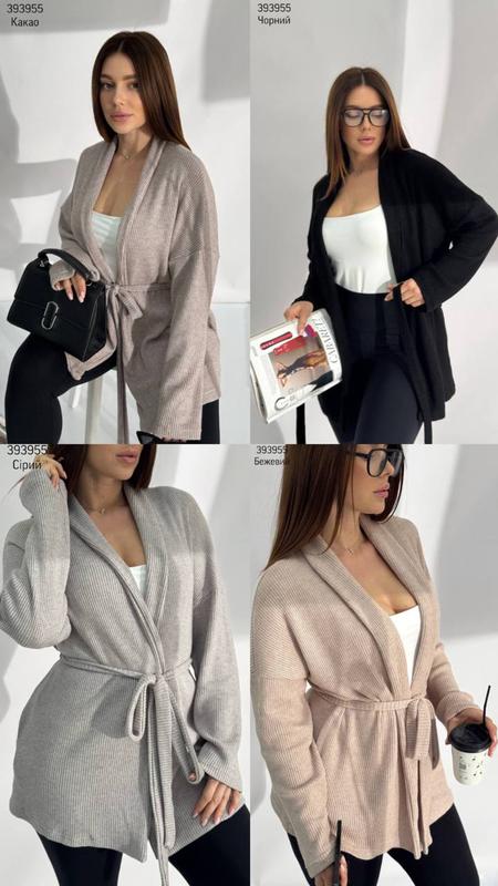 Кардиган женский Код: 393955 ◾ Сезонность: Демисезонность ◾ Материал: Трикотаж, машинная вязка ◾ Состав: Коттон, Акрил #Кардиган ЗАМІРИ: == ВЕРХ == Размер 1 Ширина плечей: 73 см Полуобхват груди: 62 см Полуобхват талии: 56 см Полуобхват бедер: 56 см Длина рукава: 42 см Длина изделия: 73 см Размер 2 Ширина плечей: 75 см Полуобхват груди: 66 см Полуобхват талии: 58 см Полуобхват бедер: 59 см Длина рукава: 47 см Длина изделия: 76 см