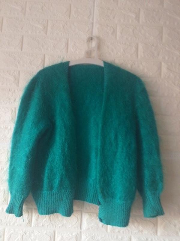 теплий,пухнастий кардиган,, шикарного кольору,на гудзики ног-48 длина рукава -55 длина кардигана-56см