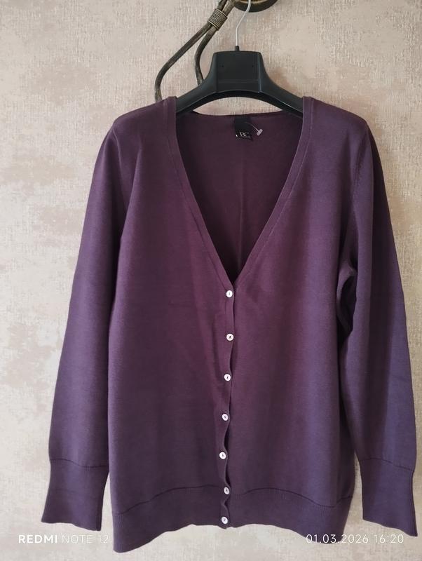 Продаю хорошего качества женский кардиган. Бавовна 100%. Подойдет на наш размер 48 или L европейский. Замеры: длина 63, полуокружность груди 55, длина рукава от плеча 59. Цвет, что-то среднее между цветом марсала и фиолетовым. Новый, без бумажных броков.