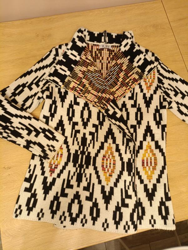 Теплый кардиган на размер М длина 68см, рукав 60см, ширина по груди 50см Толстая нежная структура ткани, акрил с добавлением мозга, очень теплая и приятная на ощупь без дефектов или каких-либо нюансов
