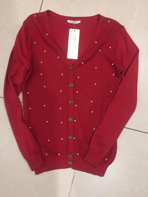 Вязаная кофта на пуговицах украшена жемчугом. Производство Турция