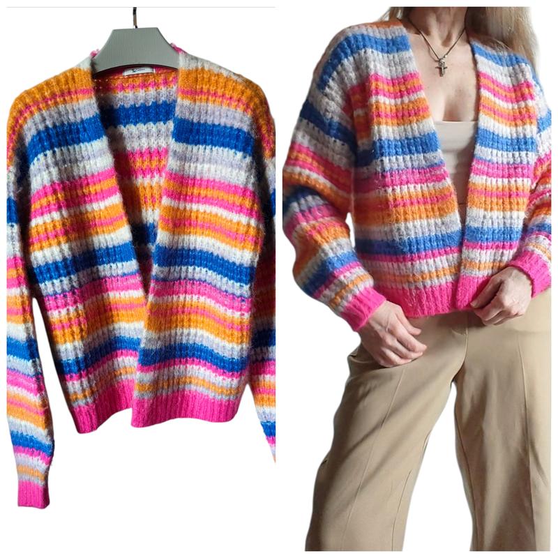 яркий мягкий кардиган, состояние идеал., ТU, p.8( 36), 60% п/э 15% акрил 25% recul п/э. Плечи приспущенные 56 рукав 56 грудь 60 длина 62