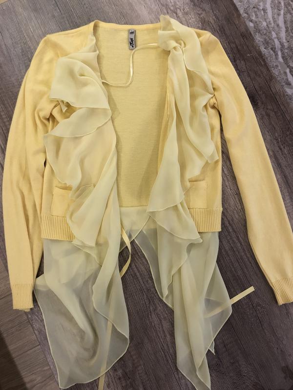 Продам кофточку лимонного кольору з вставкамиіз шифону. Дуже нарядно дивиться. Можна спереду завязувати. Розмір s, але підійде і на m. Стан новоі, одягнула раз чи два. Купувала у фірмовому відділі andre tan