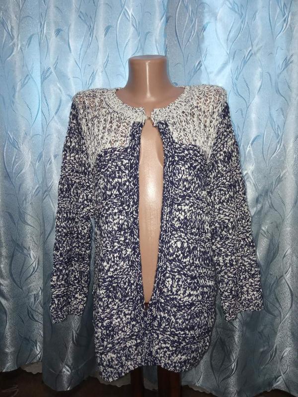 Красивый, стильный кардиганчик. Застегивается на крючек. Рукавчик 7\8. ОГ 100-116 см ОТ 104-118 см ОБ 104-118 см Рукавчик 50 см Длина 67 см