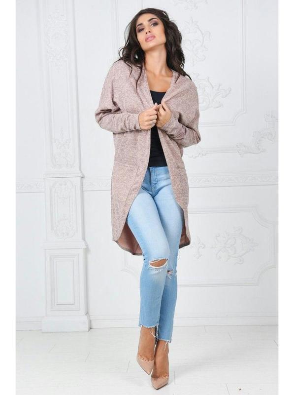 Жіночий кардиган з ангори-софт з начосом. Виріб без застібок, округлий низ, довгі рукави. Тканина ― ангора-софт Довжина виробу по спинці від плеча горловини 97см Довжина рукава 61 див. Два бічних кишені. Колір: Бежевий Бордо Марсала Світло-сірий Темно-синій Темно-сірий Розмір одягу 42-44 46-48 50-52