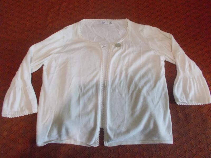 Белый кардиган Almia.На вещи - XL. На наш размер 44-46. Мерки : ПОГ (между подмышками) – 52 см, ПОТ- 46 см, ПОБ – 55 см, ширина плечей – 46 см, длина вещи – 62 см. Направлю Новой почтой или Укрпочтой. Качество ткани отменное-100% вискоза. Almia - шведская торговая марка женской одежды, бренд для успешных, деловых женщин, заботящихся о своём индивидуальном образе.