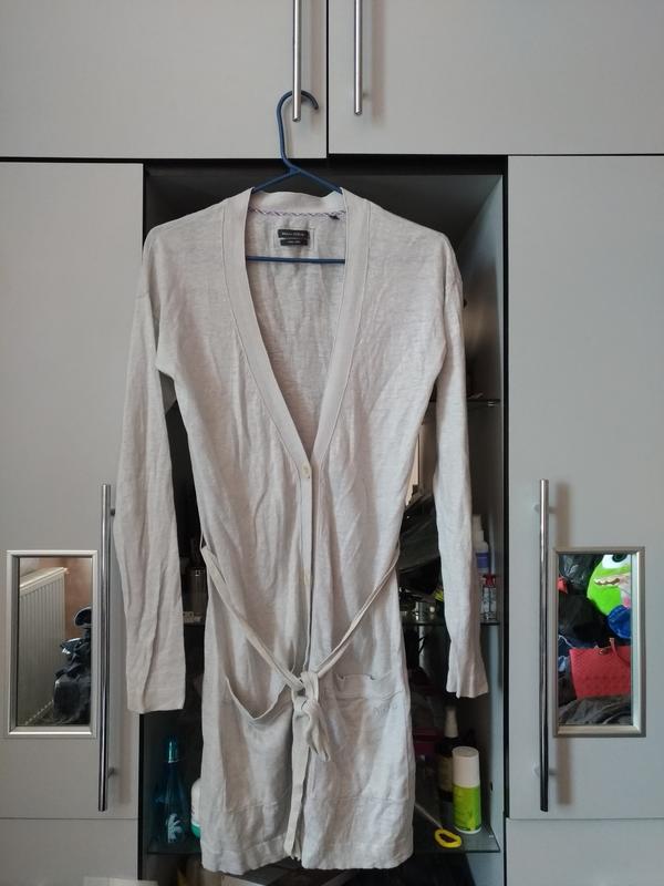 Льняной легкий кардиган Marc O Polo в идеальном состоянии, спереди с двумя карманами. Размер: S Длина 82см. Плечи 50см. Под руками ПО 42см. Рукава 55см.
