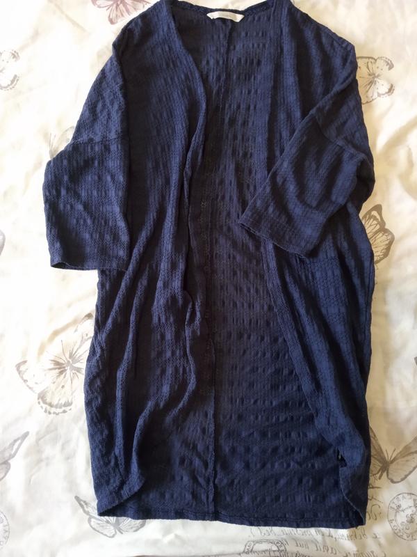 Кардиган тёмно-синего цвета с коротким рукавом.