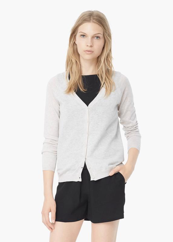 Класичний жіночий кардиган від Mango (Іспанія). М'яка приємна тканина! Універсальний бежевий колір!! Відмінна якість!! Склад: 60% бавовна, 40% поліестер. Розмір в наявності: L Заміри р L: довжина рукава (від горловини) - 74 см, ширина (від пройми до пройми) - 53,5 см, довжина по спинці - 61 см.