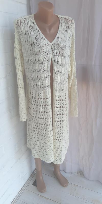 Безподобный кардиган,красивые узоры,правая пола длиннее чем левая,такой дизайн, без застёжки, длина изделия-93см, длина рукава от горла-74 см, без деффектов