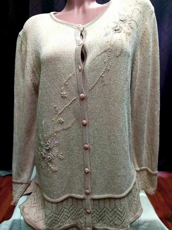 КРАСИВАЯ БЕЖЕВАЯ ТРИКОТАЖНАЯ КОФТА. ОЧЕНЬ НАРЯДНО СМОТРИТСЯ УКРАШЕНА ЧЕШСКИМ БИСЕРОМ ШЁЛКОВОЙ НИТЬЮ И ПУГОВИЩАМИ С КАМУШКАМИ. МЯГКАЯ ОЧЕНЬ ПРИЧТНАЯ ТЕЛУ В ОТЛИЧНОМ СОСТОЯНИИ ПОГ 55 ПОБ 58 ДЛИНА 73 РУКАВ 63 ПЛЕЧИ 47 СМОТРИТЕ ДРУГИЕ МОИ ОБЪЯВЛЕНИЯ ХОРОШИЕ ВЕЩИ ПРИЯТНЫЕ ЦЕНЫ ОБНОВЛЕНИЕ ЕЖЕДНЕВНО,ПОДПИШИТЕСЬ ЧТОБЫ НЕ ПРОПУСТИТЬ НОВИНКИ ПИШИТЕ ЗВОНИТЕ О ЦЕНЕ ВСЕГДА МОЖНО ДОГОВОРИТЬСЯ СПАСИБО ЗА ВАШ
