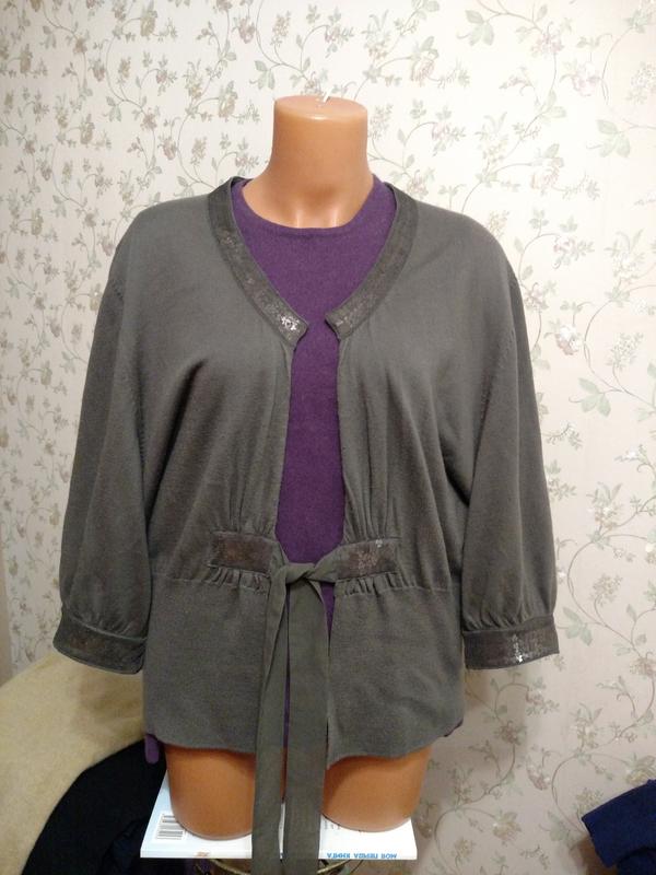 кнопка шафа плюс 15%Ніжний кардиган,з дорогим складом,70лана шерсть,30шелк,красивий сірий з коричневим колір,ніжний,шовковистий,дуже дорого виглядає
