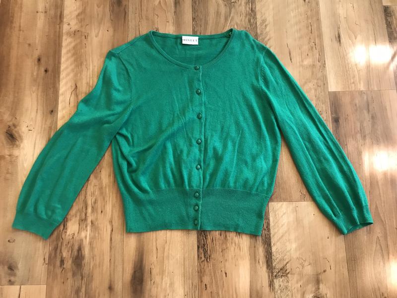 Кофта из тонкого трикотажа, красивого зеленого цвета, длина 50 см, ширина по груди 45 см, длина рукава 49 см