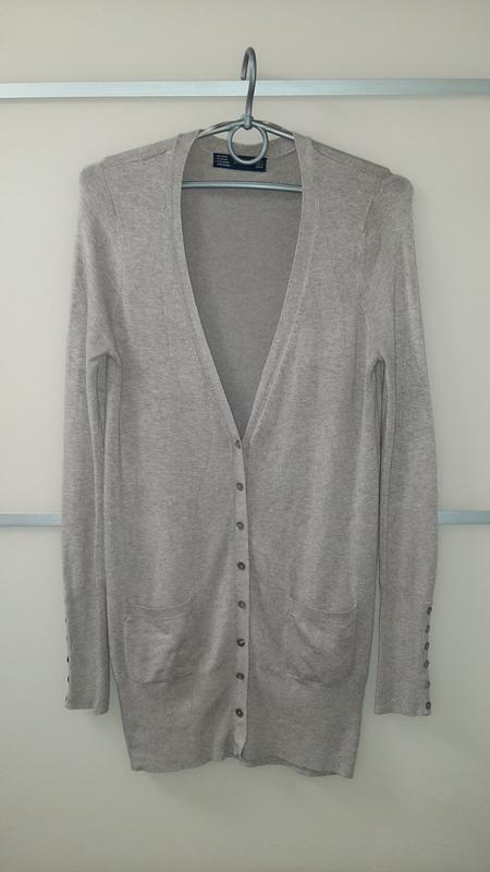 Удлинённая кофта с красивыми пуговицами, с карманами,мягенькая.🙂В очень хорошем состоянии, все пуговки на месте,катышков нет,манжеты не растянуты.Размер М,замеры: Длина от горловины 80 см. длина рукава 67 см.плечи 38 см. материал тянется.Цвет серо бежевый