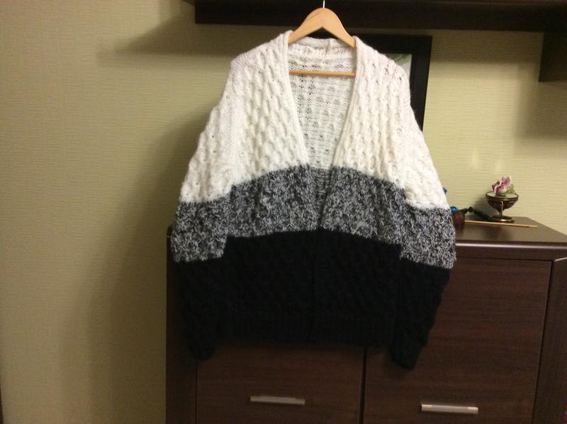 Кардиган связан вручную из мохеровых ниток.Длина 77, объём груди 106, ширина плечей 38, длина рукава 70
