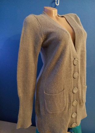 на гудзиках, відмінної якості,м'який і теплий, приємного сірого кольору