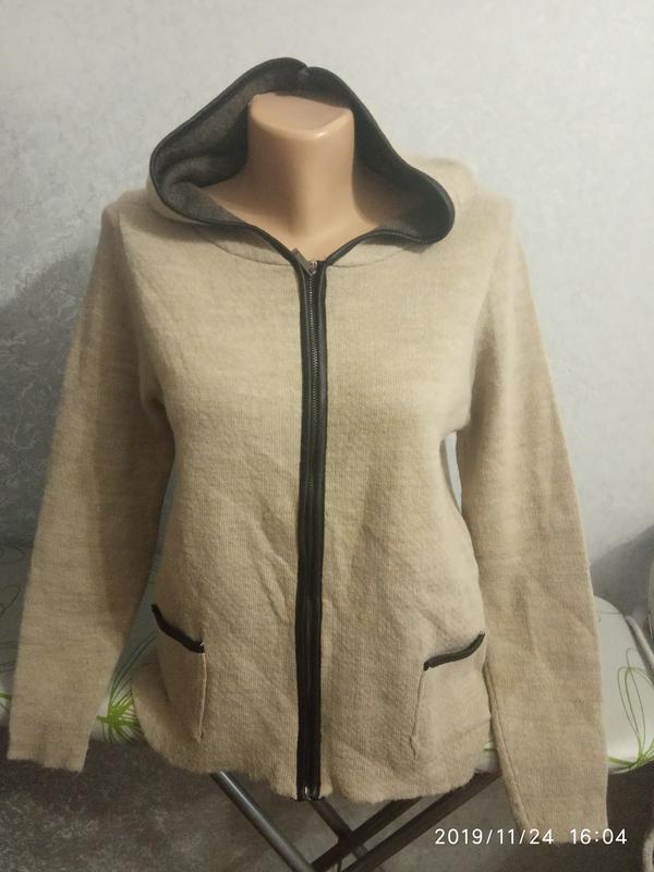 ПОГ 45 см Ширина плеч 34 см Длина от плеча 57 см Длина рукава 59 см, можно закатать манжет изнаночная сторона шоколадного цвета два функциональных кармашка для моб тела и ключей мягенький и тепленький, очень приятный при прикосновении к телу