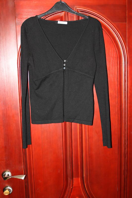 Красивая черная кофта, кардиган, указанный размер Л. Без дефектов и следов носки, как новая. Состав: 78% вискоза, 22% полиестер. замеры: длина 54см, ПОГ 46, рукав 60см, легко тянется.