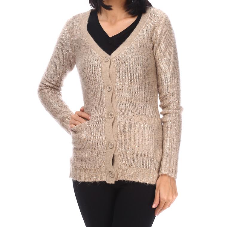 Демісезонна світло-бежева кофта з паєтками на гудзиках. Розмір S.