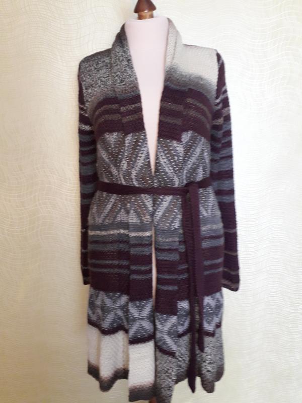 кардиган. По грудях 53 см, стегна 60 см, рукав 65 см, довжина 91 див.