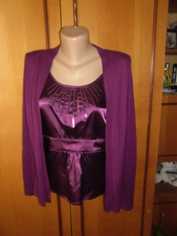 ПОГ - 50 см. Длина по спине - 59 см . Рукав -63 см. Плечи - 42 см. Плече - 9 см Это кофта- обманка. Кардинган пришит к блузке.