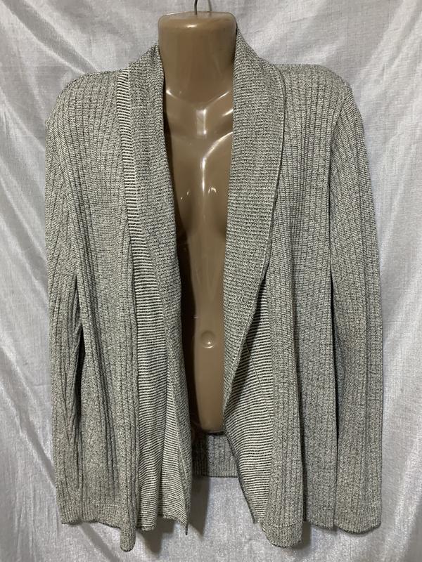 Трикотажный кардиган без застежки. Замеры: длина - 71см., плечи - 47см., рукав - 68см., ПОГ - 62см., ПОТ - 62см., ПОБ - 63см