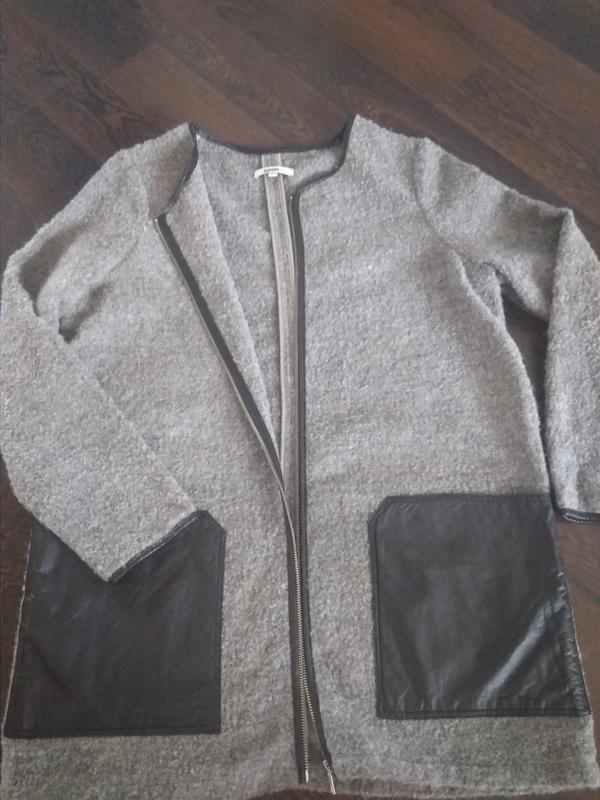 Новий вовняний кардиган З накладними кишенями з кожзам Довжина - 78см Ширина від пахви до пахви - 55см Рукава - 60см Стегна - 58см
