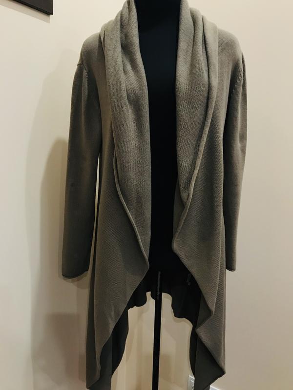 Бежево-коричневый кардиган без застежки, большой шалевый воротник. Италия Длина сзади 97 см, ПОГ 59 см, ПОТ 50 см, ПОБ свободный