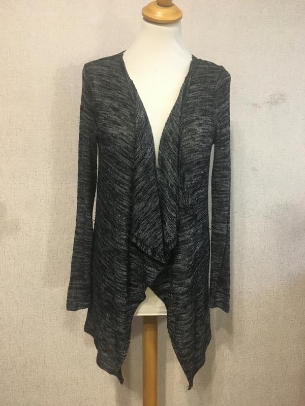 Жіноча кофта без уговиц в дуже хорошому стані,склад 70%віскоза+28%поліестер+2%еластан,розмір вказано S (34-36),реальні заміри: довжина по спині 77см, ширина плечей 42см, плече 9см, довжина рукава від плеча 66см, ширина під рукавами по спині 48см.