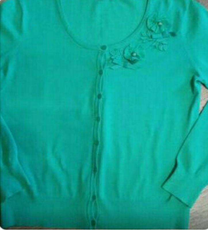 Кофта, кардиган 48-50 р-ру.,гарного цвета (в живую гораздо лучше),с круглой горловиной,актуальной аппликацией на левой верхней полочке (фото 2), застегивается на пуговицах. Склад: котон. Замеры: плечи 43 см.; рукав 62 см.; об.грудей 52 см.; по низу виробу 44 см .; довж.виробу 57 см. Перешлю после 100% оплаты на карточку. Отправлю Новой или Укр.почтой. По дополнительной информации обратитесь.
