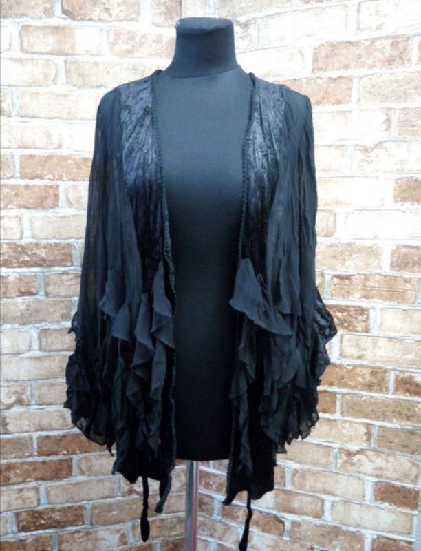 Шикарный кардиган в стиле бохо из жатого шифона и веллюра .очень красиво смотрится!размер 18-20