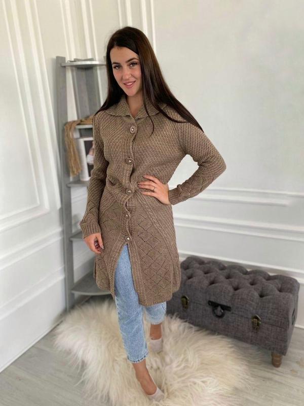 Кардиган женский Страна производитель Турция Удлинённая модель, вязка плотная цвет:серый, чёрный, хаки, коричневый Размер:44/46/48