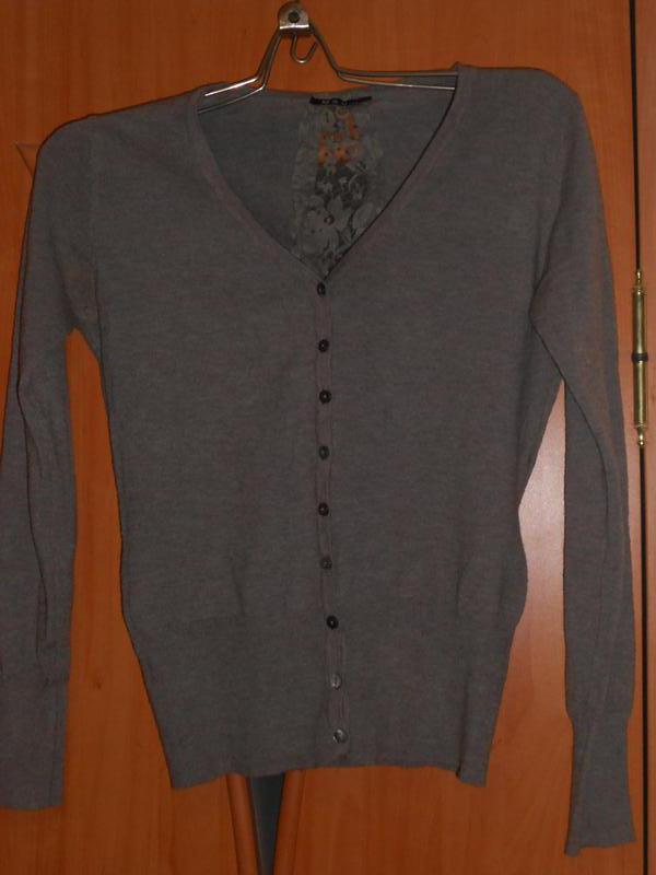 Кофта заді прикрашена гіпюром і бантіками.Дуже красиво виглядає.Незакашлатана,нерозтянута.Довжина 57см,рукав 57см.Розмір с,м.
