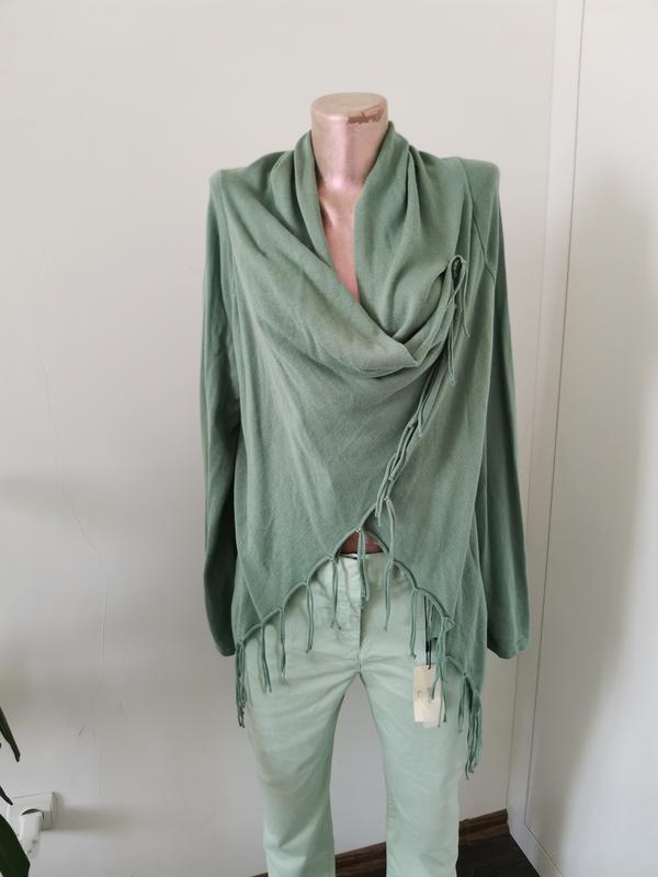 Чудовий оливкового кольору кардиган Плечі 47 см Довжина 94 см ( з коміром) Довжина рукава 72.5 см Об'єм (ширина) 123 см