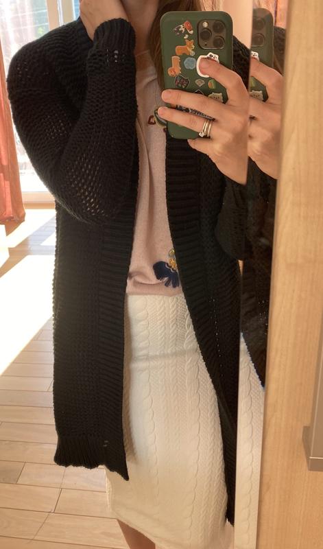 Кардиган купувала в Штатах. Склад: 60% акрил, 40% нейлон В мене Ска, то рукави трохи за сильно облягають. Рукав понижений щодо плеча