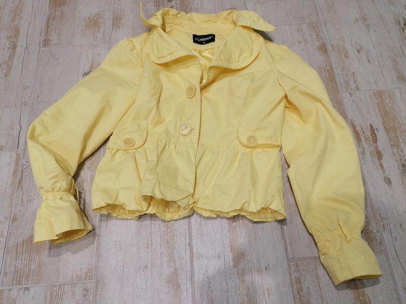 Солнечный укороченный пиджак. Изделие на пуговицах. Состояние нового , с подкладкой ✓ Длина по спинке - 50,5 см. Длина рукава от плеча - 61 см ✓Ширина подмышками 48,5 см, ширина плеч 40,5 см. Замеры сделаны в спокойном состоянии