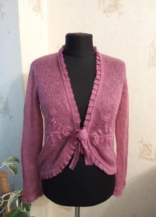 Теплий кардиган, мохер, павутинка, рюші, ажур, на зав'язках