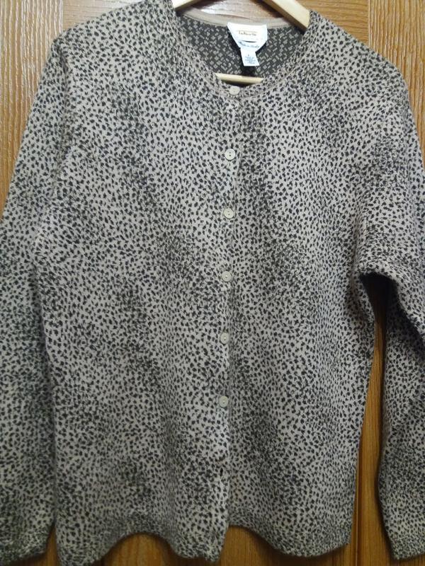 Яркий кардиган кофейного цвета с черными вкраплениями На фото цвет более блеклый, сероватый, что не соответствует действительности. На самом деле, выглядит ярко, контрастно. . Состав : шерсть - 67 %, каттон - 33 %. Длина - 61 см. ПОГ - 51 см, ПОБ - 51 см. Длина рукава - 60 см